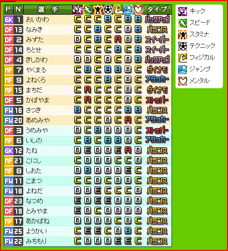 カルチョビットa 特訓 選手データ Google Sheets